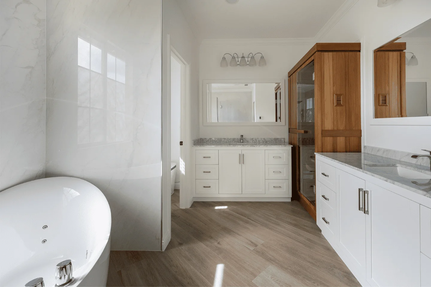 From bathroom lighting and luxurious bathtubs to modern sinks, vanities, flooring, and wall designs, our bathroom remodeling contractors in the San Francisco Bay Area ensure every detail reflects your taste. With Aziz Construction, you get all the inspiration, guidance, and craftsmanship you need to turn ideas into reality.
